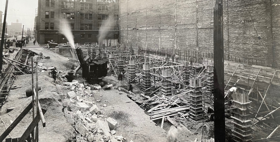 The difficulties with the Manual project did not follow William or his company, and the early 1920’s also saw the completion of two large commercial buildings in the heart of downtown Indianapolis. The first was the Kresge Building, located on the southwest corner of Pennsylvania and Washington Street. The structure most recently was known to house Morton’s Steakhouse (prior to its closure during the COVID pandemic) and the Indianapolis Business Journal, which relocated to offices on Monument Circle. The slide show of construction images below are from the Jungclaus-Campbell company records, and is controlled using the arrows on the left and right of the images. Pearl Street (or alley) is at the back of the structure, and the large seven story building in the background currently houses Coaches Tavern, Pearl Street Pizza, and Tin Roof.